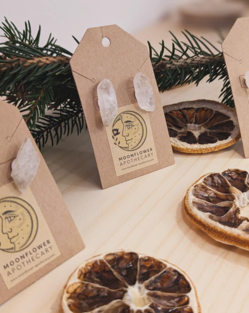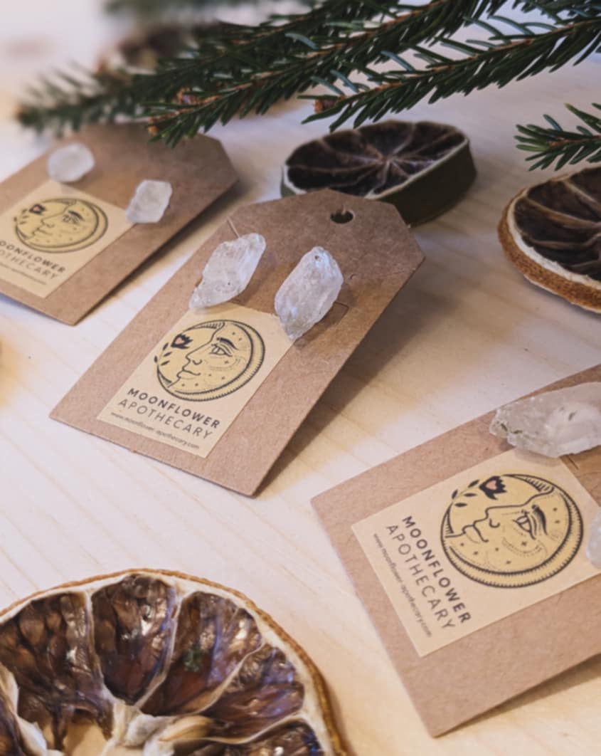 This selenite was found and gathered by my own hands here in Northeast Ohio. Each pair is different and unique. These studs are beautiful, ethical and a little piece of Ohio you can keep close.